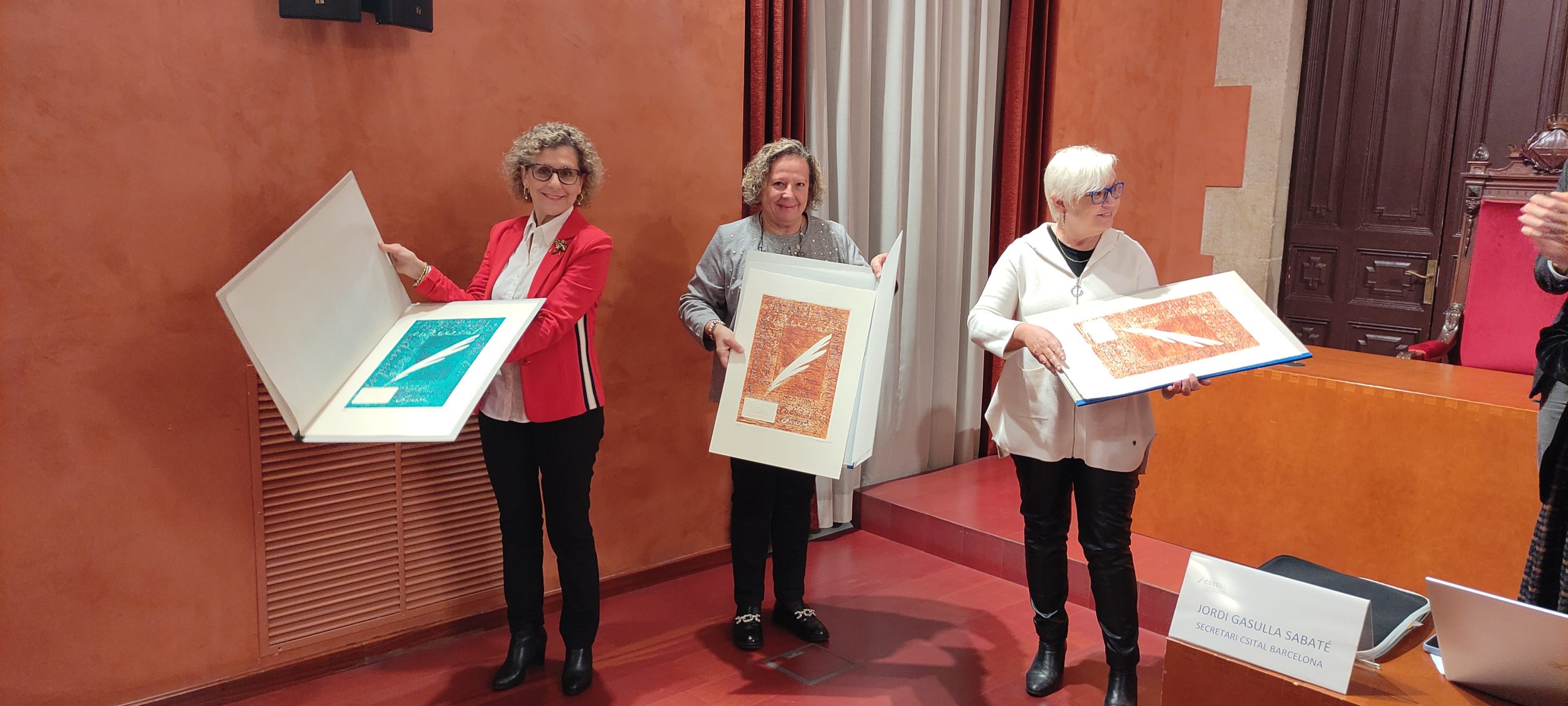 Finalment, es van lliurar unes distincions per les tres col·legiades que s’han jubilat aquest any: la Sra. Eloisa González Flores, la Sra. Bàrbara Minoves Coromines i la Sra. Montserrat Sensat Borràs.