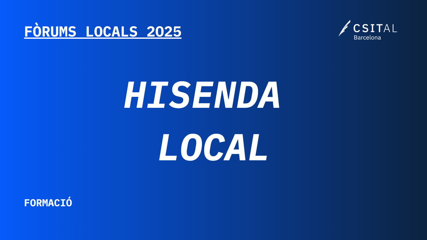 Coordinació: Javier Requejo García El CSITAL de Barcelona organitza el proper dijous dia 22 de maig de 2025 aquesta jornada. 📄 DESCRIPCIÓ La sostenibilitat des del punt de vista de l’Hisenda Local en el planejament urbanístic. Supòsits pràctics. Importància de la sostenibilitat econòmico-financera en el planejament urbanístic 👥 PERSONES DESTINATÀRIES Personal funcionari d’Administració Local amb habilitacióContinua llegint “Hisenda local”