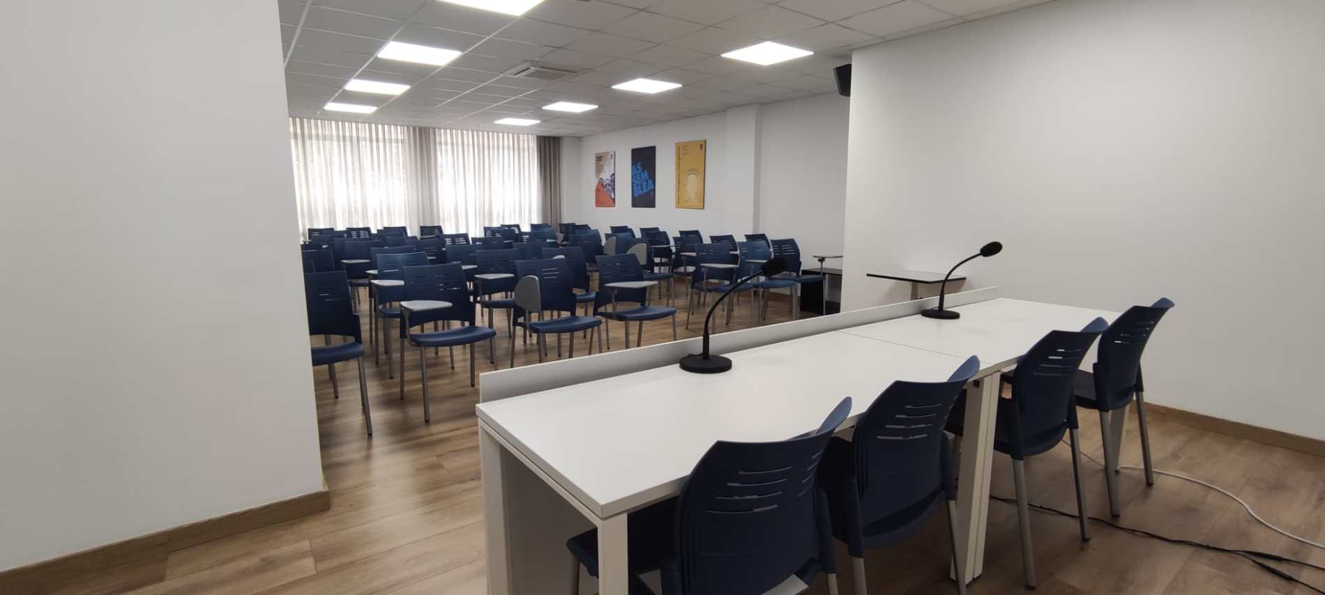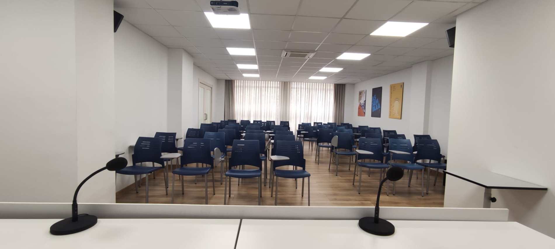 - Equipament i característiques: Aire condicionat, llum natural, Wi-Fi, cafè i aigua, projector, pissarra, altaveus